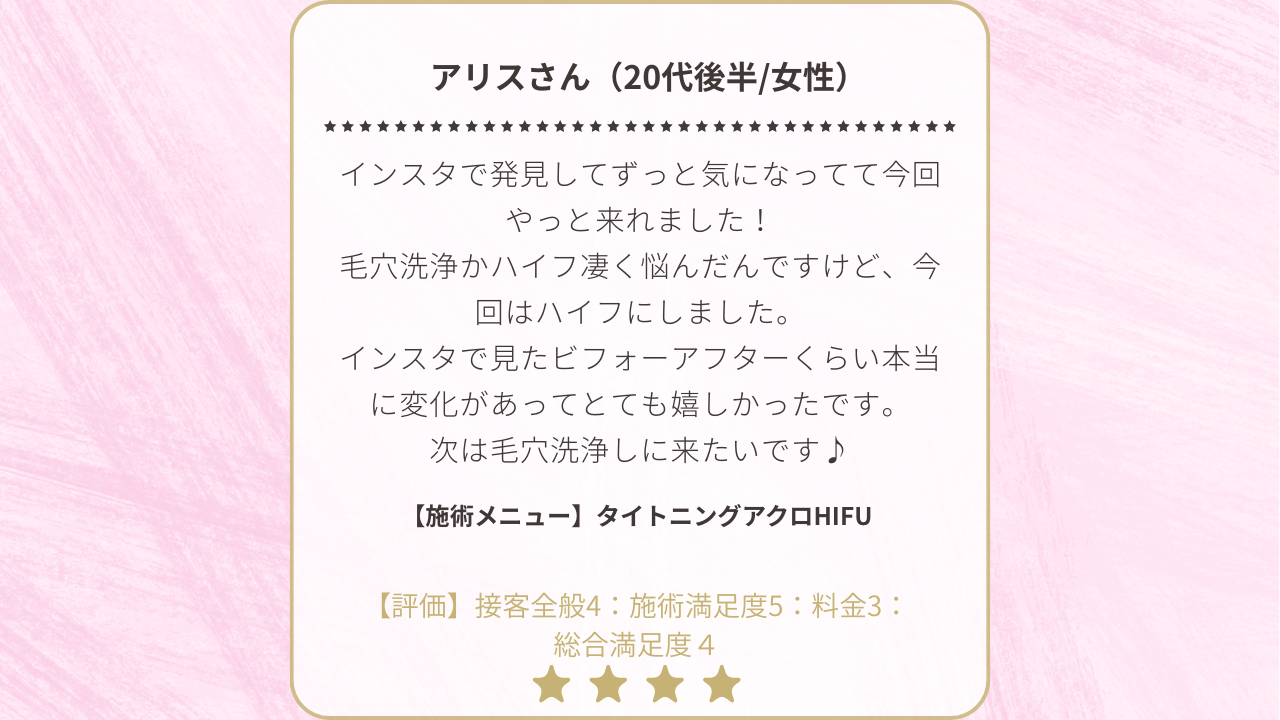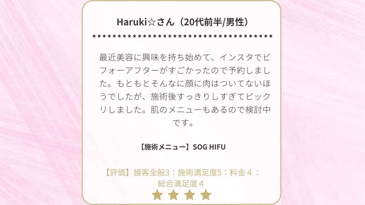 【注意事項】整形直後は施術不可となる場合が御座います。