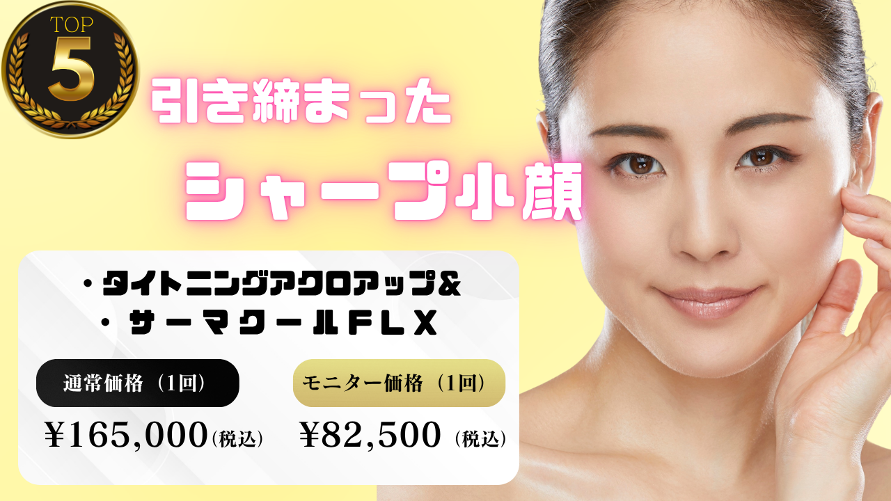 小顔、肌再生術と、様々なトラブルに応じたコースが