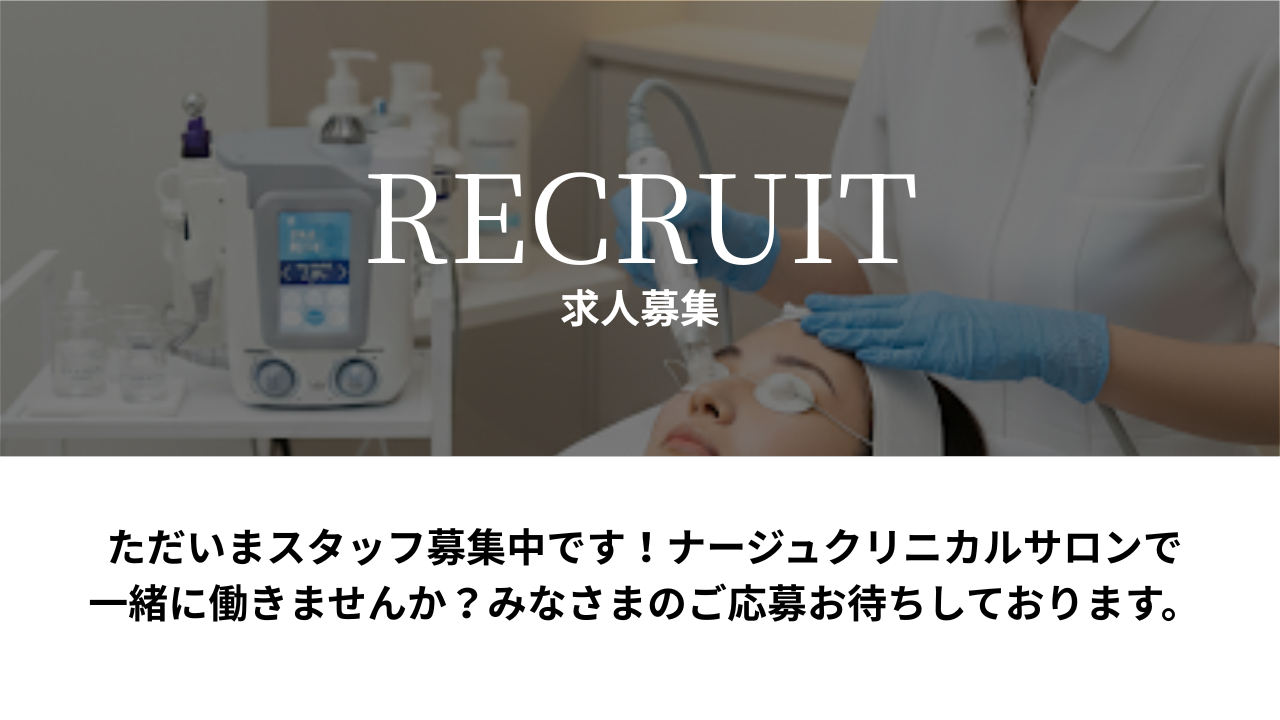 美に興味があり、人と接することが好きな方、自分自身も綺麗になりながら是非ともナージュクリニカルサロンを一緒に盛り上げてください。働きながら『資格』と『美』を手に入れませんか?みなさまからのご応募、スタッフ一同お待ちしております。